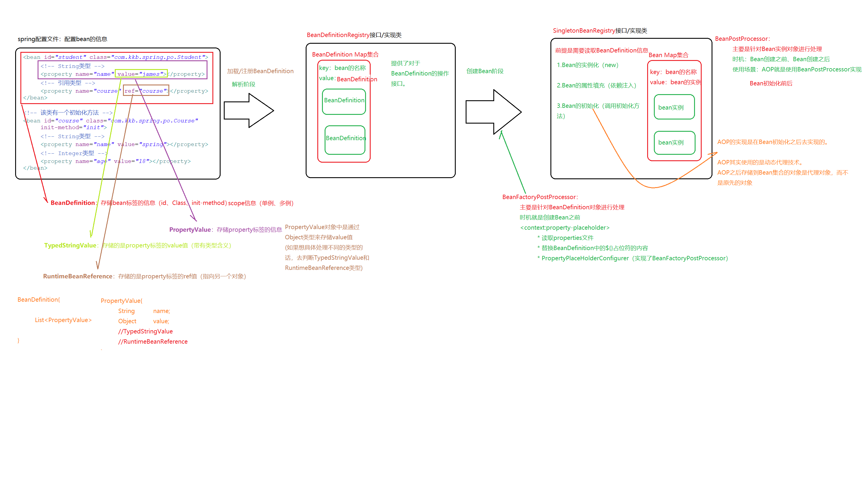 Bean被Spring通过IOC和DI进行创建和管理,Bean被Spring通过AOP进行功能增强