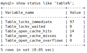 table_locks_waited:出现表级锁定争用而发生等待的次数