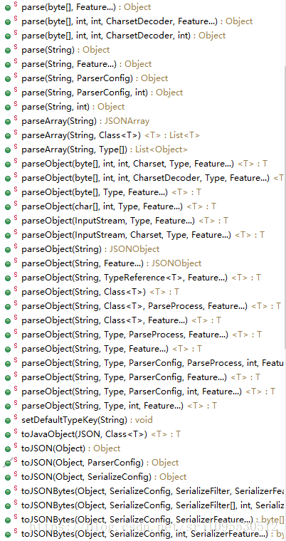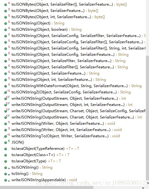 同样观察JSONArray类中的方法,由于方法较多,下面分为两部分